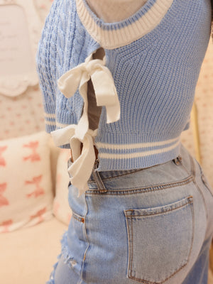 Layer it over a puff-sleeve blouse for vintage flair, wear it solo for soft-girl minimalism, or pair it with a pleated skirt for that prep-meets-pretty aesthetic. This vest is pure ribbon-wrapped cuteness in every stitch.